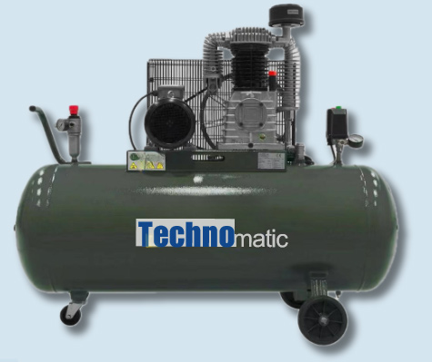 Two staged air cooled industrial air compressor - used to operate pneumatic tools, also for tire inflation & air. The air compressor is equipped with auto-cut system, flywheel, belt filter, electric motor, safety valve, V belts motor pulley, belt guard with drain valve & pressure guage cleaning.
